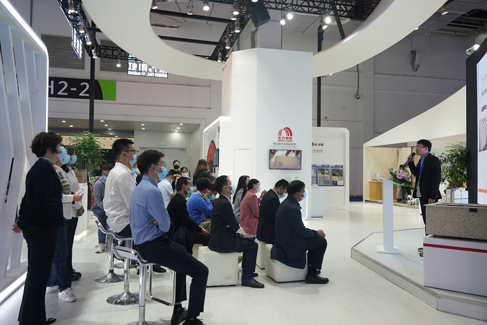 在眾多展位中,臥牛山(WONEWSUN)展位脫穎而出,其高質量的創新產品與強有力的技術優勢備受關注,吸引了大量參展人員及媒體駐足詢問。此外,臥牛山(WONEWSUN)聚焦碳達峰、碳中和與建筑業的有效銜接,緊扣展會主題及本土化保溫政策進行《上海新政后墻體內外保溫裝飾推薦》專項宣講,為該政策提出合理解決方案,并展示應對此政策的節能、保溫、裝飾相關產品,詮釋“韌性城市,低碳生活”。