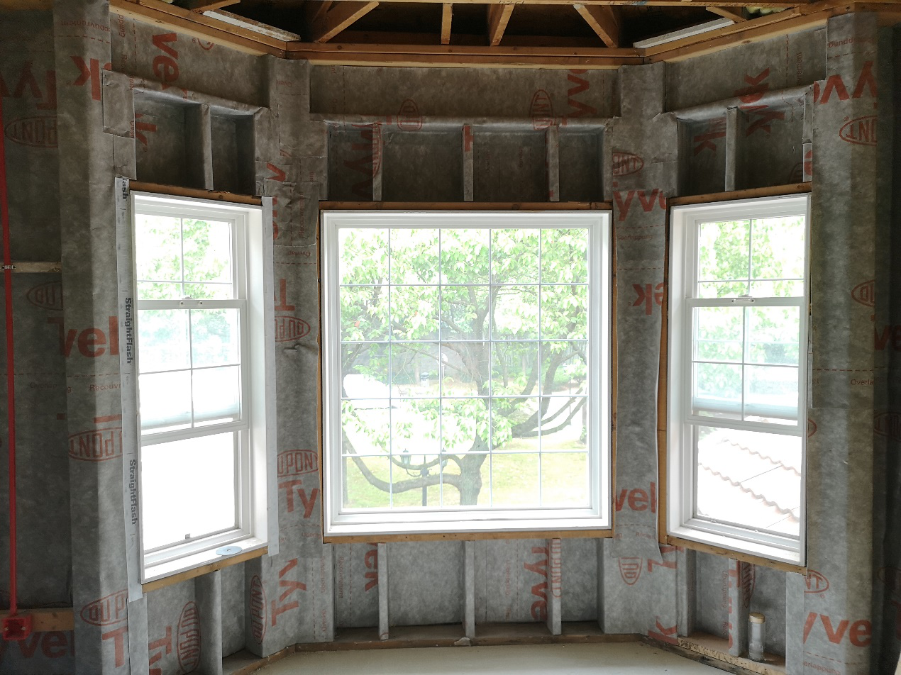 特衛強®防水透汽膜可防止外部雨、雪、昆蟲等對建筑的侵蝕,杜絕了濕氣的來源,另外其獨特的透水蒸氣性能,又能讓建筑墻體中的濕氣排出,避免潮氣在建筑墻體中的滯留。防水透汽膜一般用于建筑墻體靠外一側,本項目翻新時先做防水透汽膜的施工,施工工藝為空鋪,由墻角從下往上施工,采用木工釘或氣釘間隔300~600mm加以固定,并配合配套膠帶對拼接縫進行密封,干作業施工便捷,縮短維修工期。在建筑翻新過程中無需拆除建筑外墻裝飾,室內作業不受環境影響,施工干擾性小。