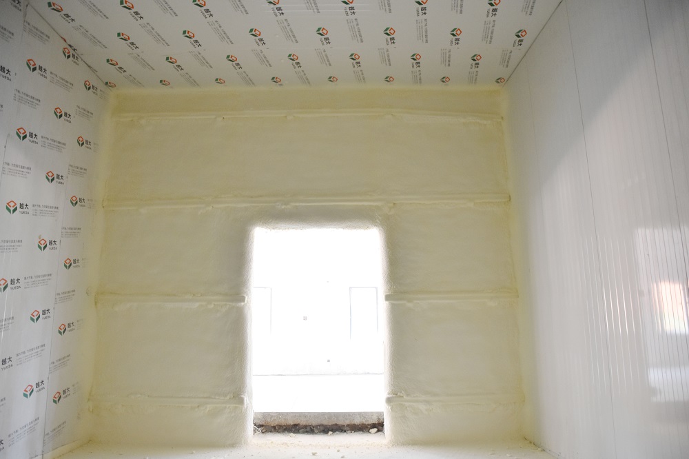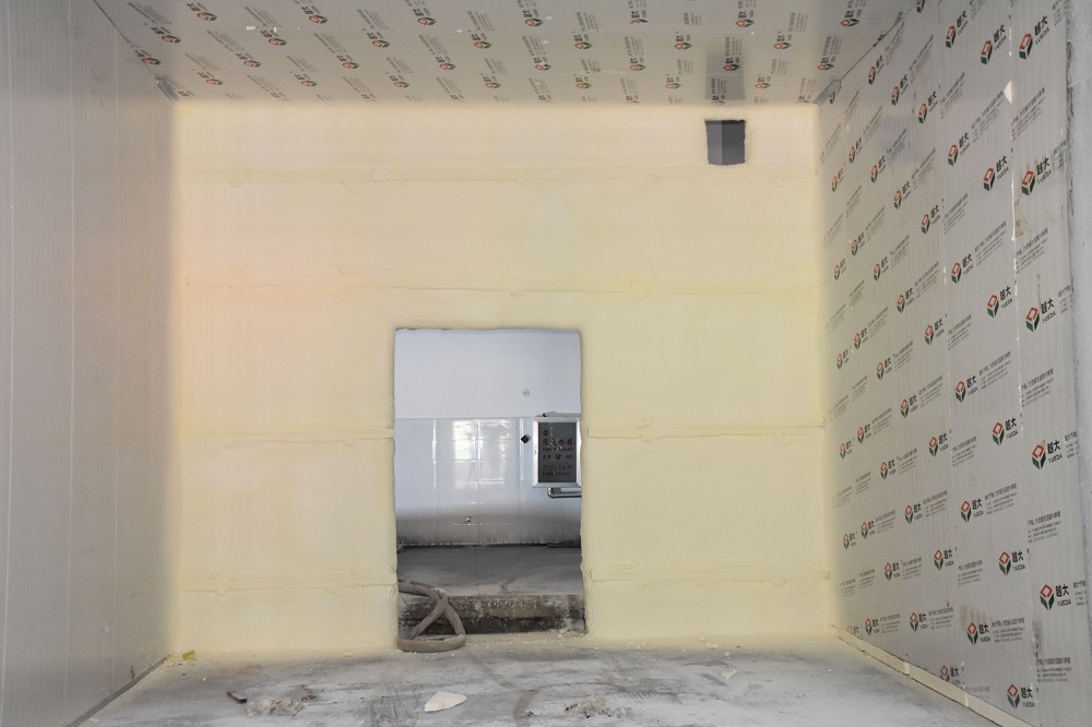 該項(xiàng)目冷藏車間使用了越大阻燃型噴涂硬泡聚氨酯,連續(xù)噴涂無接縫,有效消除冷熱橋,性能穩(wěn)定持久安全。尤其適用于屠宰項(xiàng)目的速凍間、冷凍冷藏間等。