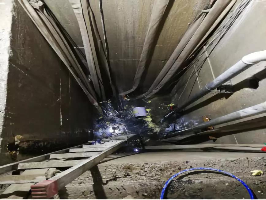 垃圾有兩類,一類是注漿產生的垃圾,比如溢出的發(fā)泡聚氨酯;另一類是底部的泥沙。一些超大涌水量的電梯井,維修時,會分多次注漿。因為一些涌水口在底板和側墻交界的陰角處。用水泵降水,水位有可能降到一定程度降不下去。那就需要處理先露出的部位,然后再降水,再處理水下的部位。